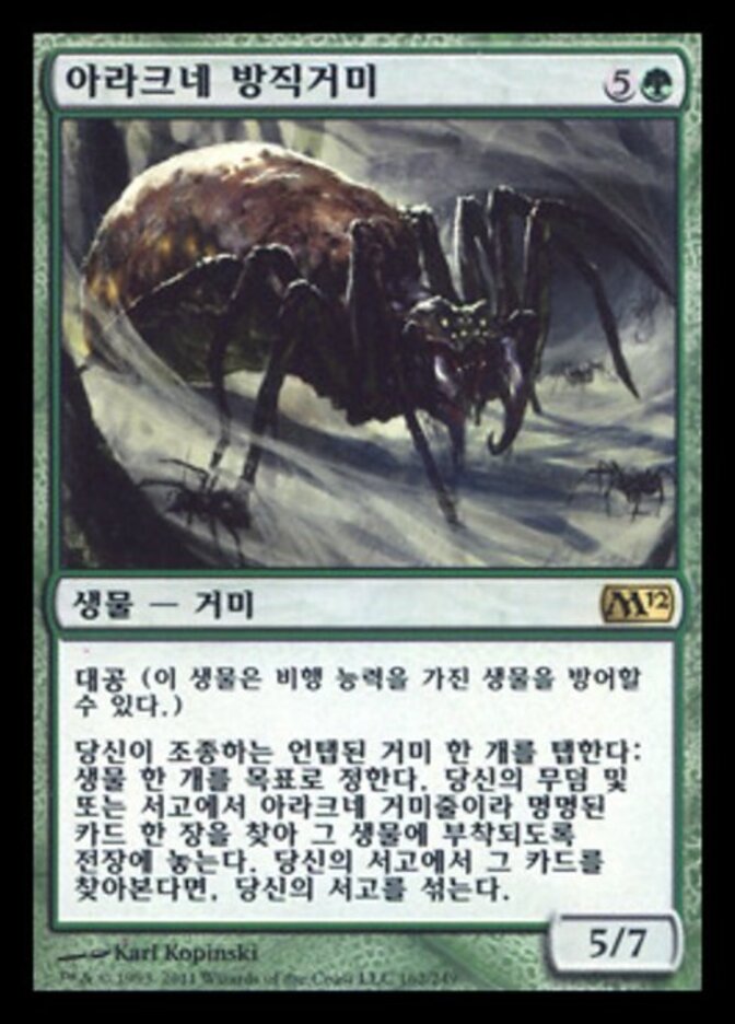 | Rules | Reach Tap an untapped Spider you control: Search your graveyard and/or library for a card named Arachnus Web and put it onto the battlefield attached to target creature. If you search your library this way, shuffle. |