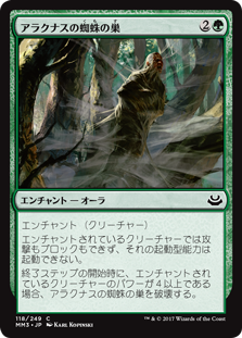 | Rules | Enchant creature Enchanted creature can't attack or block, and its activated abilities can't be activated. At the beginning of the end step, if enchanted creature's power is 4 or greater, destroy Arachnus Web. |