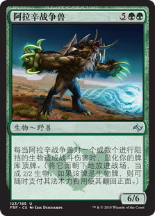 | Rules | Whenever Arashin War Beast deals combat damage to one or more blocking creatures, manifest the top card of your library. (Put it onto the battlefield face down as a 2/2 creature. Turn it face up any time for its mana cost if it's a creature card.) |