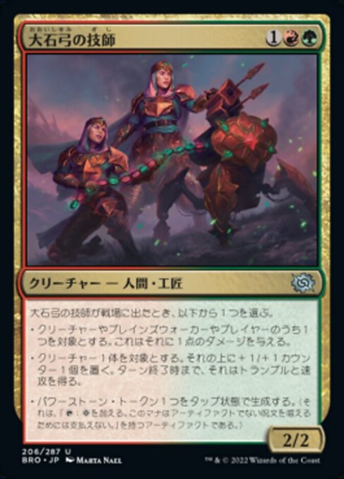 | Rules | When Arbalest Engineers enters the battlefield, choose one — • Arbalest Engineers deals 1 damage to any target. • Put a +1/+1 counter on target creature. It gains trample and haste until end of turn. • Create a tapped Powerstone token. (It's an artifact with ": Add . This mana can't be spent to cast a nonartifact spell.") |