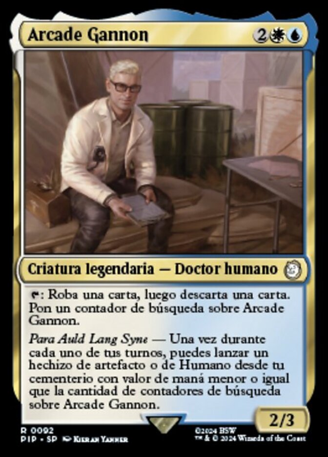 | Rules | : Draw a card, then discard a card. Put a quest counter on Arcade Gannon. For Auld Lang Syne — Once during each of your turns, you may cast an artifact or Human spell from your graveyard with mana value less than or equal to the number of quest counters on Arcade Gannon. |