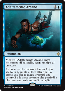 | Rules | As Arcane Adaptation enters the battlefield, choose a creature type. Creatures you control are the chosen type in addition to their other types. The same is true for creature spells you control and creature cards you own that aren't on the battlefield. |