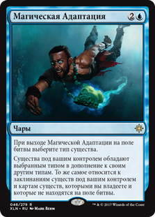 | Rules | As Arcane Adaptation enters the battlefield, choose a creature type. Creatures you control are the chosen type in addition to their other types. The same is true for creature spells you control and creature cards you own that aren't on the battlefield. |