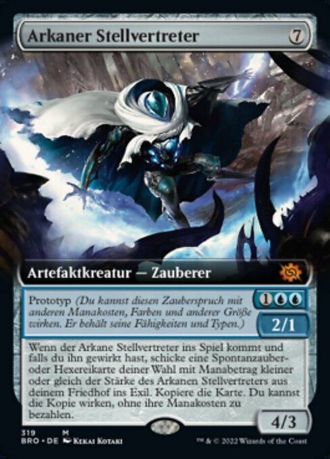 | Rules | Prototype — 2/1 (You may cast this spell with different mana cost, color, and size. It keeps its abilities and types.) When Arcane Proxy enters the battlefield, if you cast it, exile target instant or sorcery card with mana value less than or equal to Arcane Proxy's power from your graveyard. Copy that card. You may cast the copy without paying its mana cost. |