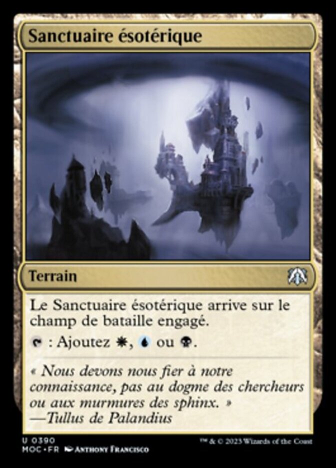 | Rules | Arcane Sanctum enters the battlefield tapped. : Add , , or . |