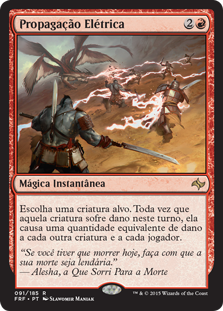 Rules Choose target creature. Whenever that creature is dealt damage this turn, it deals that much damage to each other creature and each player.