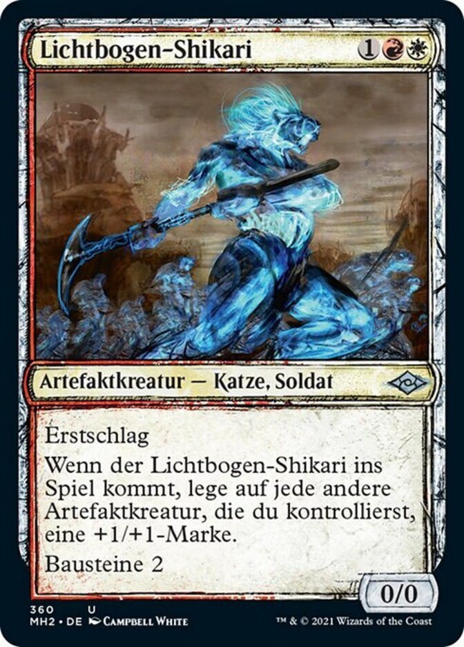 | Rules | First strike When Arcbound Shikari enters the battlefield, put a +1/+1 counter on each other artifact creature you control. Modular 2 (This creature enters the battlefield with two +1/+1 counters on it. When it dies, you may put its +1/+1 counters on target artifact creature.) |