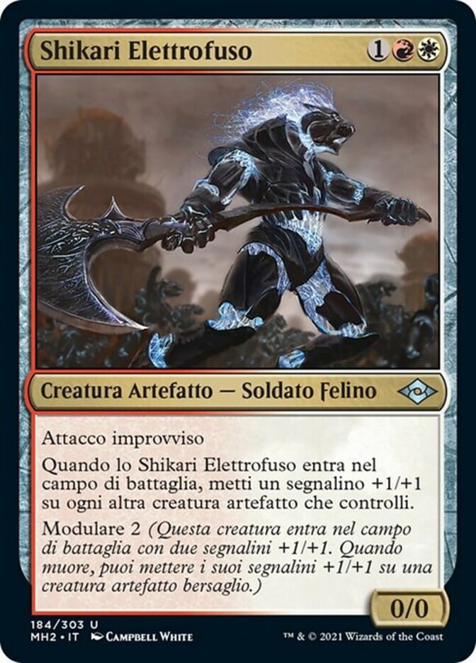 | Rules | First strike When Arcbound Shikari enters the battlefield, put a +1/+1 counter on each other artifact creature you control. Modular 2 (This creature enters the battlefield with two +1/+1 counters on it. When it dies, you may put its +1/+1 counters on target artifact creature.) |