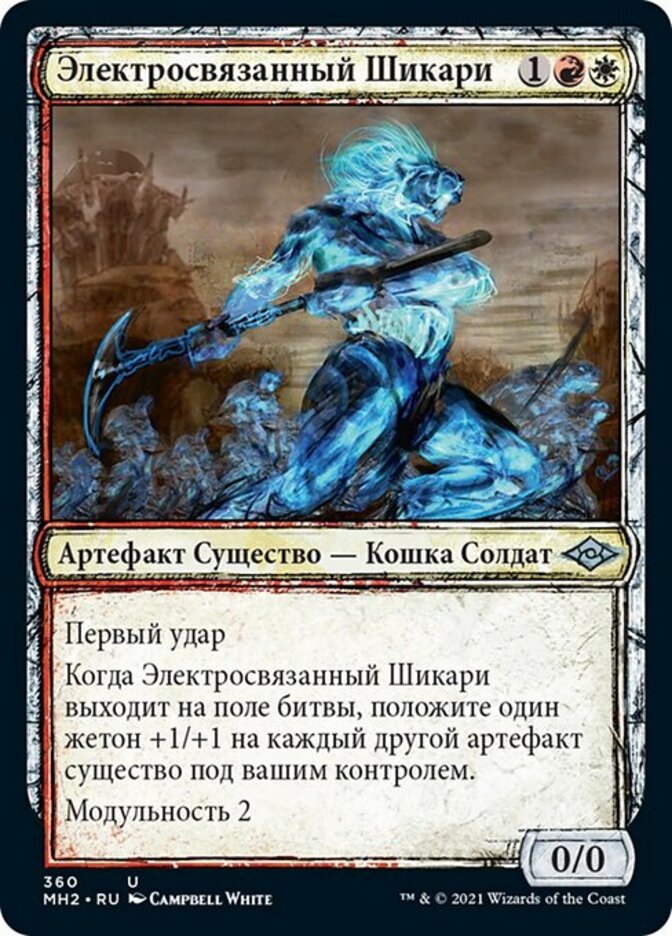 | Rules | First strike When Arcbound Shikari enters the battlefield, put a +1/+1 counter on each other artifact creature you control. Modular 2 (This creature enters the battlefield with two +1/+1 counters on it. When it dies, you may put its +1/+1 counters on target artifact creature.) |