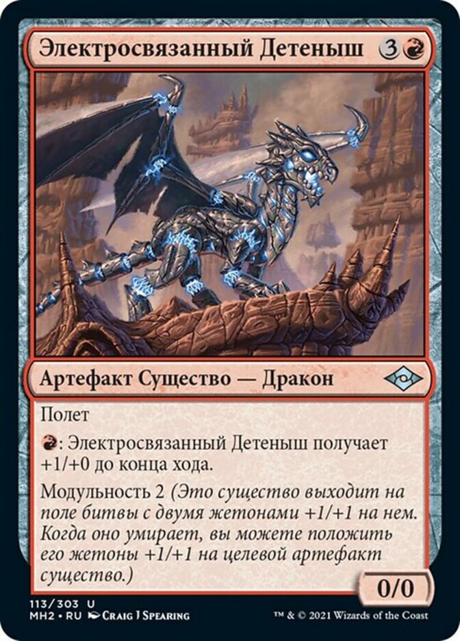 | Rules | Flying : Arcbound Whelp gets +1/+0 until end of turn. Modular 2 (This creature enters the battlefield with two +1/+1 counters on it. When it dies, you may put its +1/+1 counters on target artifact creature.) |