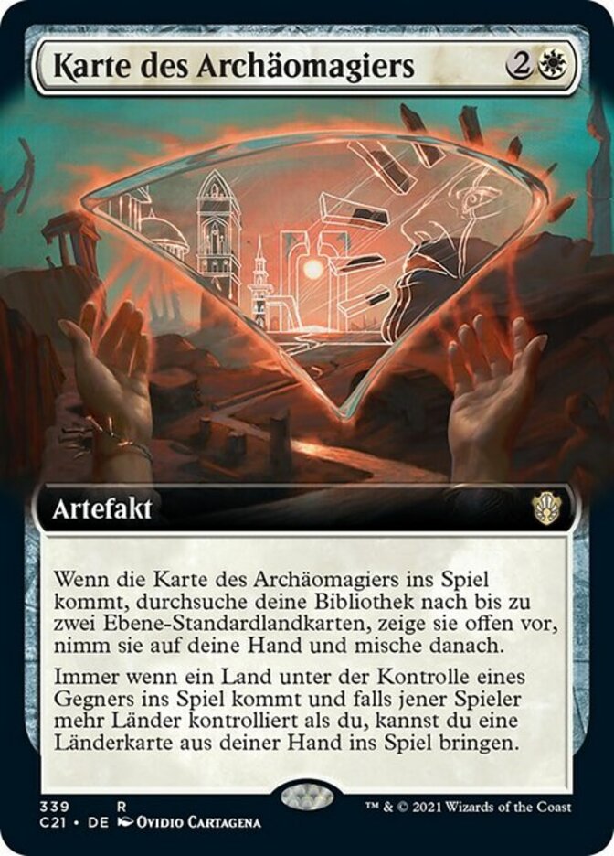 | Rules | When Archaeomancer's Map enters the battlefield, search your library for up to two basic Plains cards, reveal them, put them into your hand, then shuffle. Whenever a land enters the battlefield under an opponent's control, if that player controls more lands than you, you may put a land card from your hand onto the battlefield. |