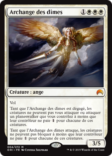 | Rules | Flying As long as Archangel of Tithes is untapped, creatures can't attack you or planeswalkers you control unless their controller pays for each of those creatures. As long as Archangel of Tithes is attacking, creatures can't block unless their controller pays for each of those creatures. |