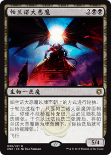 | Rules | Draft Archdemon of Paliano face up. As long as Archdemon of Paliano is face up during the draft, you can't look at booster packs and must draft cards at random. After you draft three cards this way, turn Archdemon of Paliano face down. (You may look at cards as you draft them.) Flying |