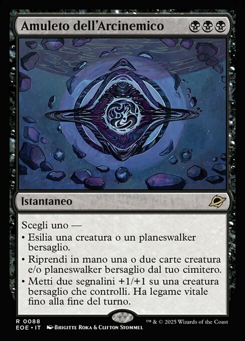 | Rules | Choose one — • Exile target creature or planeswalker. • Return one or two target creature and/or planeswalker cards from your graveyard to your hand. • Put two +1/+1 counters on target creature you control. It gains lifelink until end of turn. |
