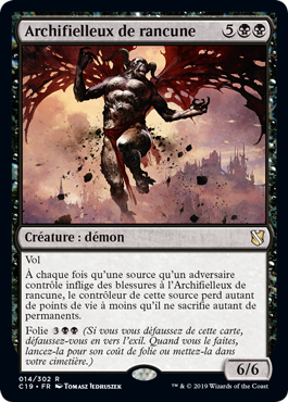 | Rules | Flying Whenever a source an opponent controls deals damage to Archfiend of Spite, that source's controller loses that much life unless they sacrifice that many permanents. Madness (If you discard this card, discard it into exile. When you do, cast it for its madness cost or put it into your graveyard.) |
