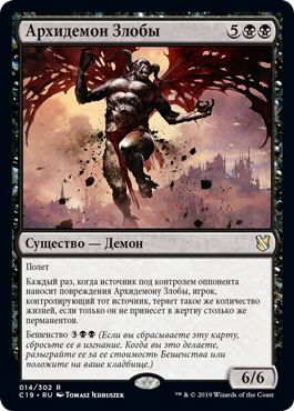 | Rules | Flying Whenever a source an opponent controls deals damage to Archfiend of Spite, that source's controller loses that much life unless they sacrifice that many permanents. Madness (If you discard this card, discard it into exile. When you do, cast it for its madness cost or put it into your graveyard.) |