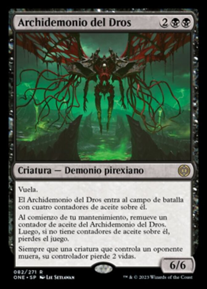 | Rules | Flying Archfiend of the Dross enters the battlefield with four oil counters on it. At the beginning of your upkeep, remove an oil counter from Archfiend of the Dross. Then if it has no oil counters on it, you lose the game. Whenever a creature an opponent controls dies, its controller loses 2 life. |