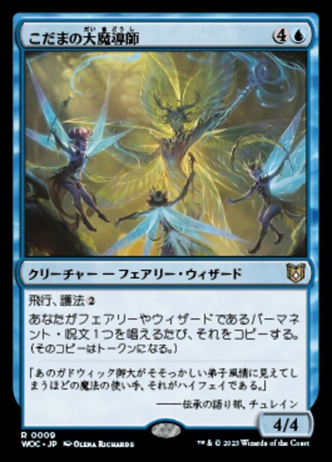 | Rules | Flying, ward Whenever you cast a Faerie or Wizard permanent spell, copy it. (The copy becomes a token.) |