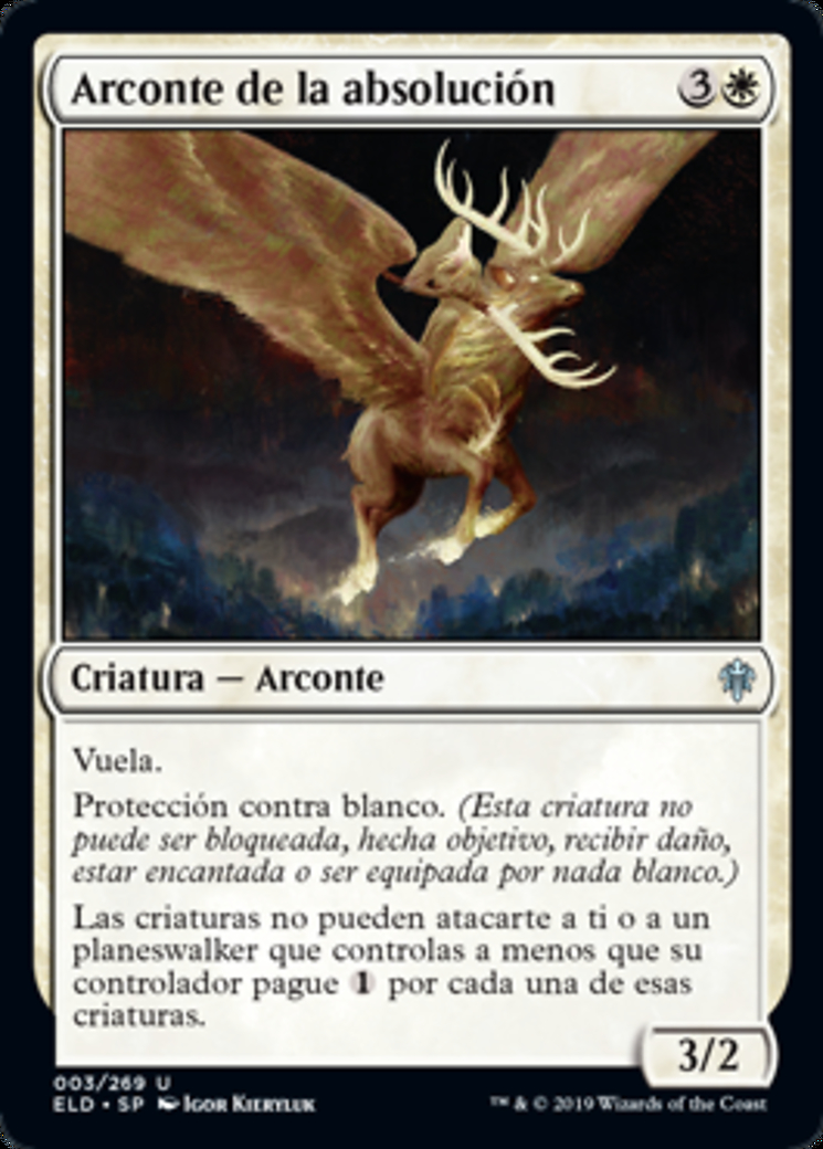 | Rules | Flying Protection from white (This creature can't be blocked, targeted, dealt damage, enchanted, or equipped by anything white.) Creatures can't attack you or planeswalkers you control unless their controller pays for each of those creatures. |