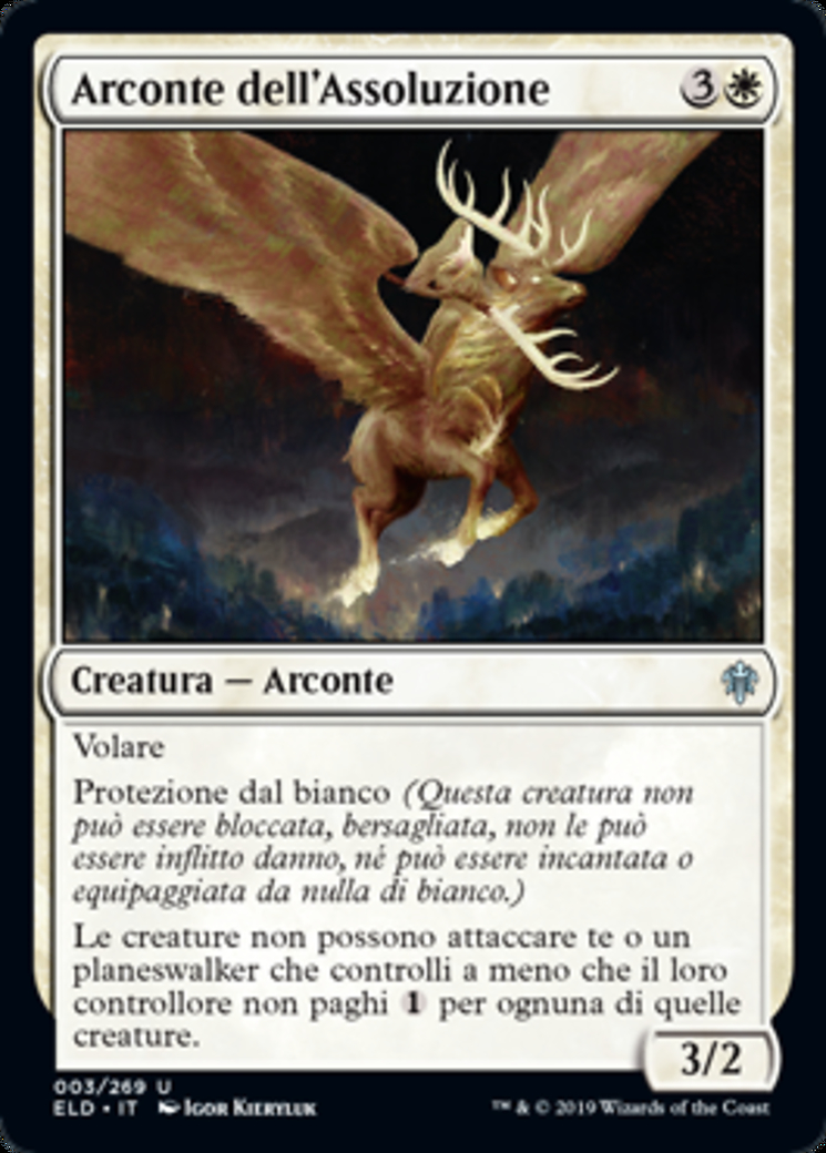 | Rules | Flying Protection from white (This creature can't be blocked, targeted, dealt damage, enchanted, or equipped by anything white.) Creatures can't attack you or planeswalkers you control unless their controller pays for each of those creatures. |