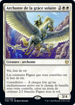 | Rules | Flying, lifelink Pegasus creatures you control have lifelink. Constellation — Whenever an enchantment enters the battlefield under your control, create a 2/2 white Pegasus creature token with flying. |