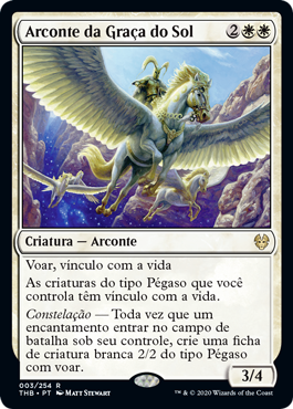 | Rules | Flying, lifelink Pegasus creatures you control have lifelink. Constellation — Whenever an enchantment enters the battlefield under your control, create a 2/2 white Pegasus creature token with flying. |