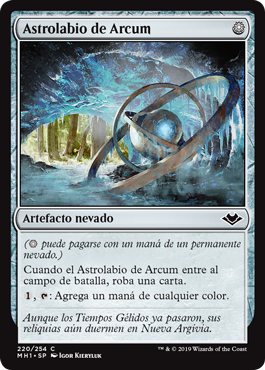 | Rules | ( can be paid with one mana from a snow source.) When Arcum's Astrolabe enters the battlefield, draw a card. , : Add one mana of any color. |