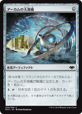 | Rules | ( can be paid with one mana from a snow source.) When Arcum's Astrolabe enters the battlefield, draw a card. , : Add one mana of any color. |