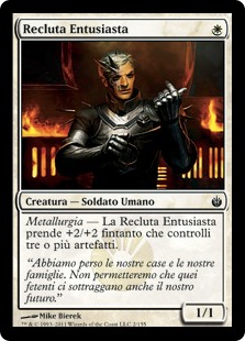 | Rules | Metalcraft — Ardent Recruit gets +2/+2 as long as you control three or more artifacts. |