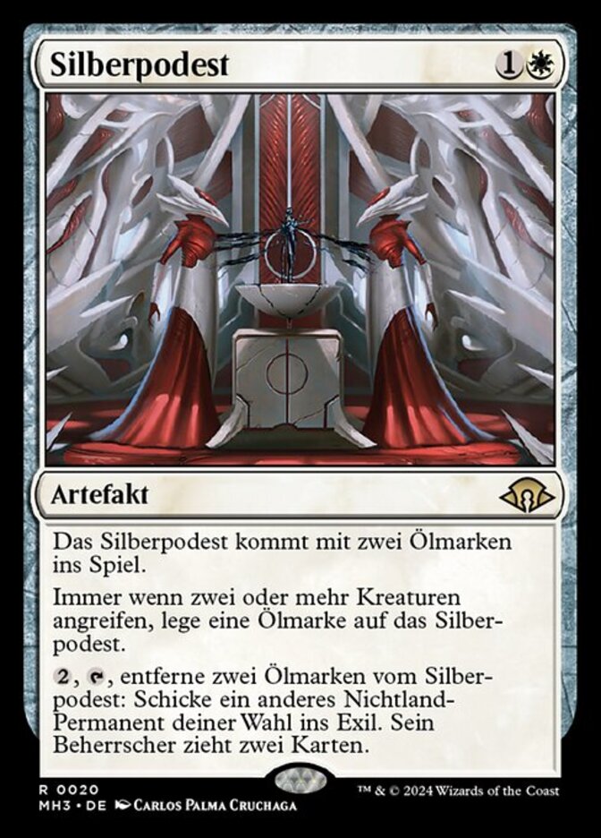 | Rules | Argent Dais enters the battlefield with two oil counters on it. Whenever two or more creatures attack, put an oil counter on Argent Dais. , , Remove two oil counters from Argent Dais: Exile another target nonland permanent. Its controller draws two cards. |