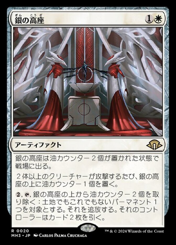 | Rules | Argent Dais enters the battlefield with two oil counters on it. Whenever two or more creatures attack, put an oil counter on Argent Dais. , , Remove two oil counters from Argent Dais: Exile another target nonland permanent. Its controller draws two cards. |
