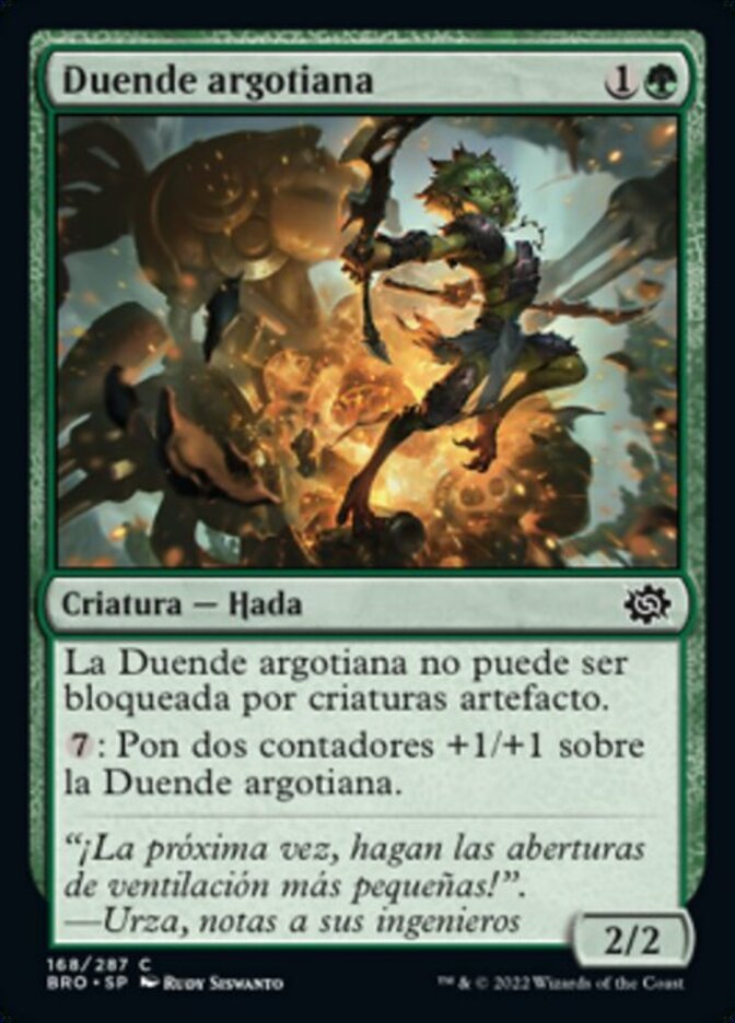 | Rules | Argothian Sprite can't be blocked by artifact creatures. : Put two +1/+1 counters on Argothian Sprite. |