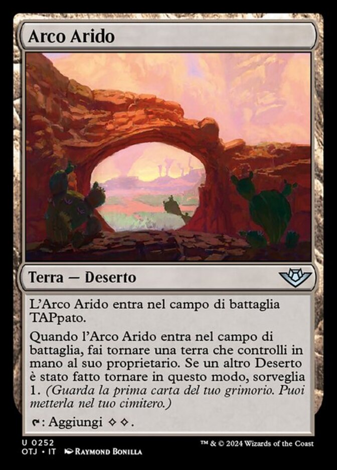 | Rules | Arid Archway enters the battlefield tapped. When Arid Archway enters the battlefield, return a land you control to its owner's hand. If another Desert was returned this way, surveil 1. (Look at the top card of your library. You may put it into your graveyard.) : Add . |