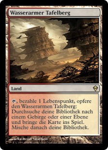 | Rules | , Pay 1 life, Sacrifice Arid Mesa: Search your library for a Mountain or Plains card, put it onto the battlefield, then shuffle. |