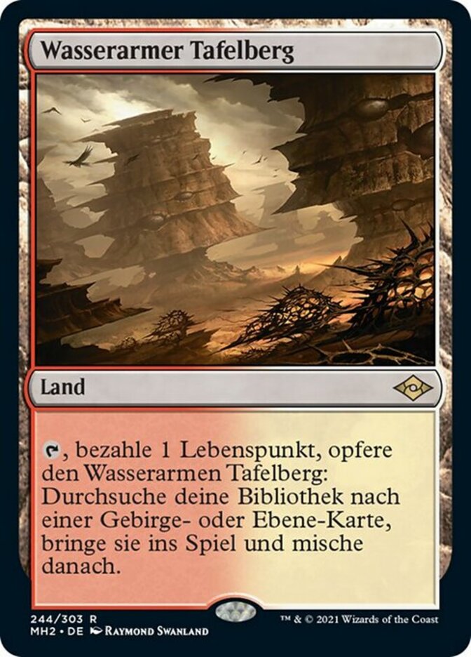 | Rules | , Pay 1 life, Sacrifice Arid Mesa: Search your library for a Mountain or Plains card, put it onto the battlefield, then shuffle. |