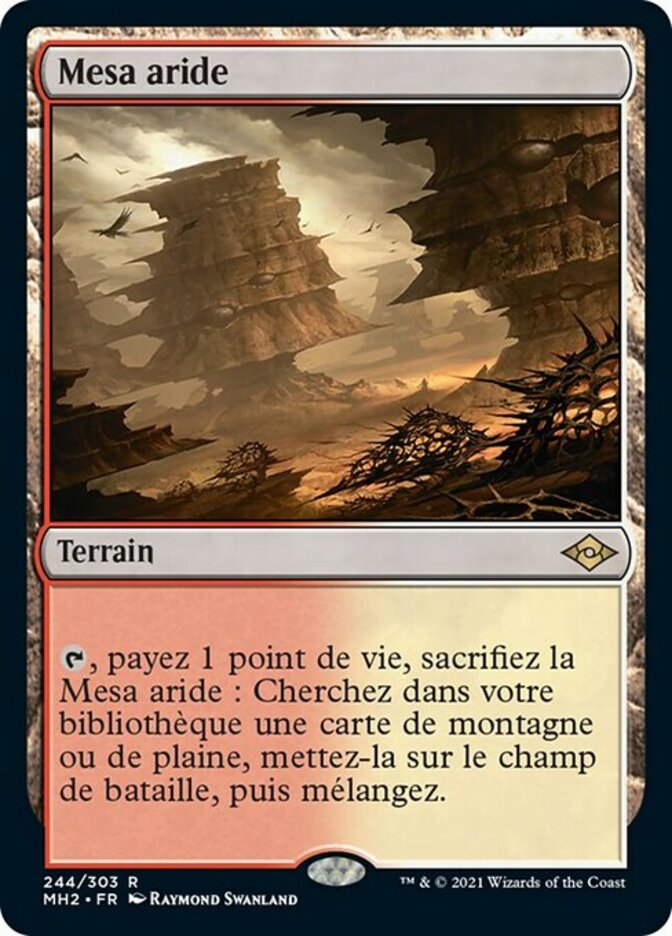 | Rules | , Pay 1 life, Sacrifice Arid Mesa: Search your library for a Mountain or Plains card, put it onto the battlefield, then shuffle. |
