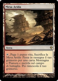 | Rules | , Pay 1 life, Sacrifice Arid Mesa: Search your library for a Mountain or Plains card, put it onto the battlefield, then shuffle. |