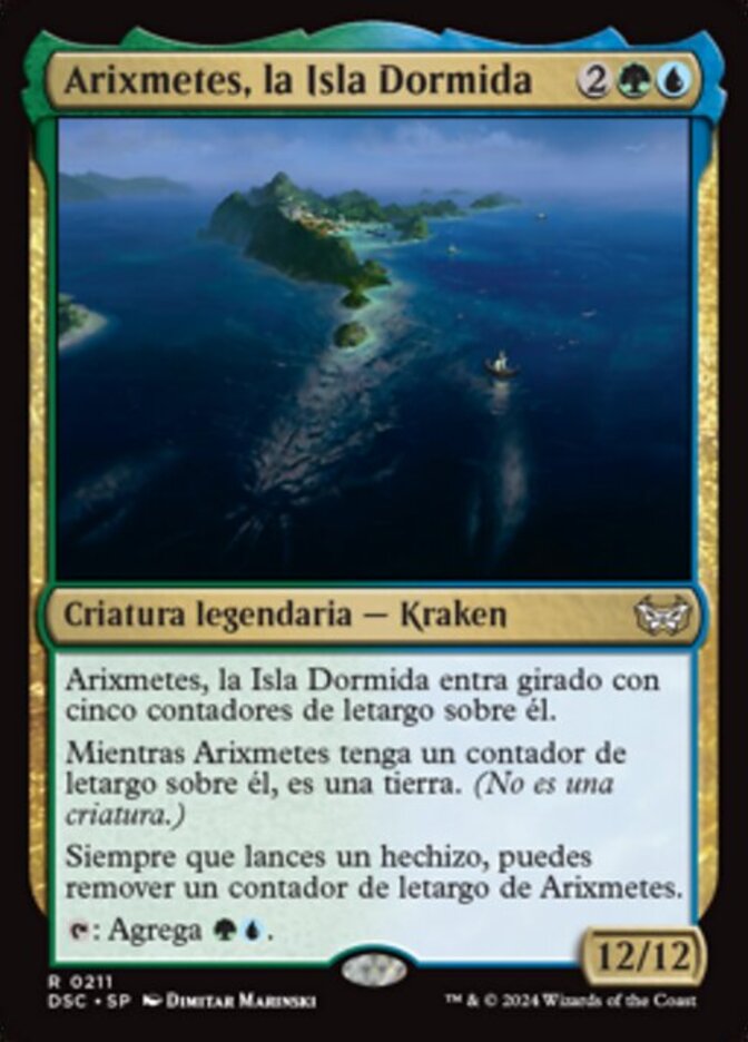 | Rules | Arixmethes, Slumbering Isle enters the battlefield tapped with five slumber counters on it. As long as Arixmethes has a slumber counter on it, it's a land. (It's not a creature.) Whenever you cast a spell, you may remove a slumber counter from Arixmethes. : Add . |