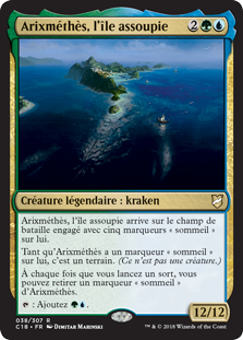 | Rules | Arixmethes, Slumbering Isle enters the battlefield tapped with five slumber counters on it. As long as Arixmethes has a slumber counter on it, it's a land. (It's not a creature.) Whenever you cast a spell, you may remove a slumber counter from Arixmethes. : Add . |