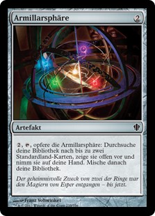 | Rules | , , Sacrifice Armillary Sphere: Search your library for up to two basic land cards, reveal them, put them into your hand, then shuffle. |