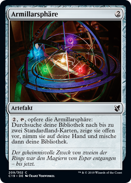 | Rules | , , Sacrifice Armillary Sphere: Search your library for up to two basic land cards, reveal them, put them into your hand, then shuffle. |
