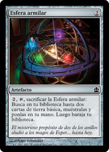| Rules | , , Sacrifice Armillary Sphere: Search your library for up to two basic land cards, reveal them, put them into your hand, then shuffle. |