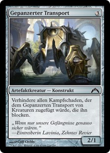 | Rules | Prevent all combat damage that would be dealt to Armored Transport by creatures blocking it. |