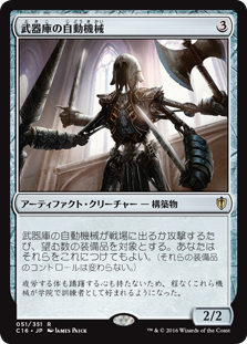 | Rules | Whenever Armory Automaton enters the battlefield or attacks, you may attach any number of target Equipment to it. (Control of the Equipment doesn't change.) |