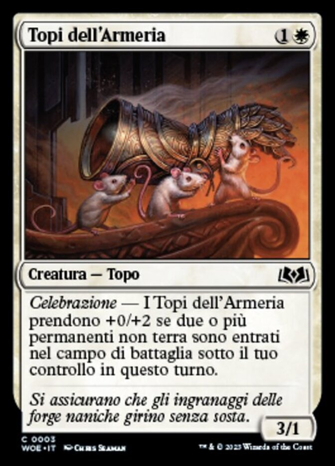 | Rules | Celebration — Armory Mice gets +0/+2 as long as two or more nonland permanents entered the battlefield under your control this turn. |