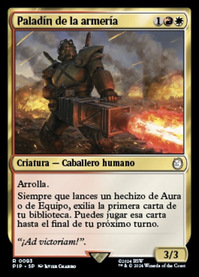 | Rules | Trample Whenever you cast an Aura or Equipment spell, exile the top card of your library. You may play that card until the end of your next turn. |