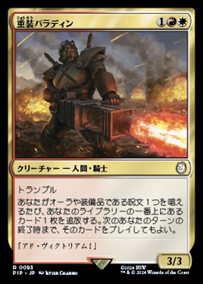 | Rules | Trample Whenever you cast an Aura or Equipment spell, exile the top card of your library. You may play that card until the end of your next turn. |