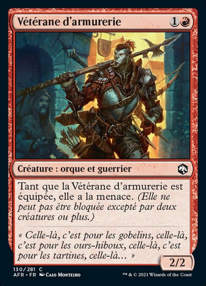| Rules | As long as Armory Veteran is equipped, it has menace. (It can't be blocked except by two or more creatures.) |