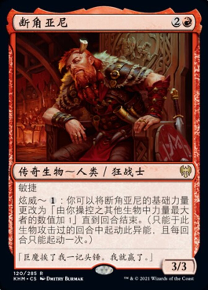 | Rules | Haste Boast — : You may change Arni Brokenbrow's base power to 1 plus the greatest power among other creatures you control until end of turn. (Activate only if this creature attacked this turn and only once each turn.) |