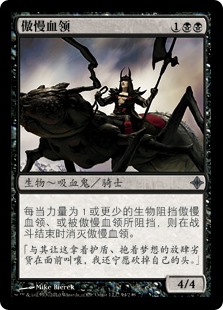 | Rules | Whenever Arrogant Bloodlord blocks or becomes blocked by a creature with power 1 or less, destroy Arrogant Bloodlord at end of combat. |